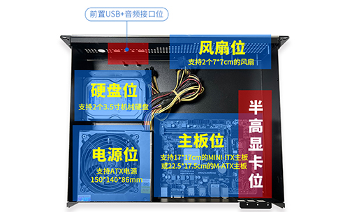 服務器機箱內部的空間布局合理,支持ITX或MATX主板、支持內置ATX電源,根據實際需進行設備布局和擴展。